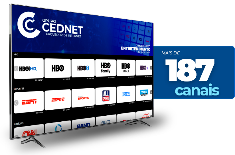 Com o Cednet Play, você acessa os principais canais da TV aberta. Já com o Cednet Plus, sua grade de canais aumenta para você aproveitar ainda mais conteúdos, filmes, esportes e entretenimento. Diversão garantida para todos, onde e quando quiser.