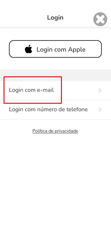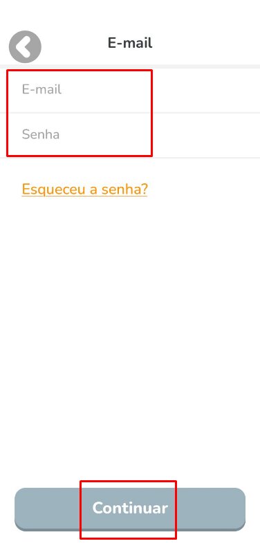6. Abra o App, clique em “Continuar”, “Login”, “Login com e-mail”.